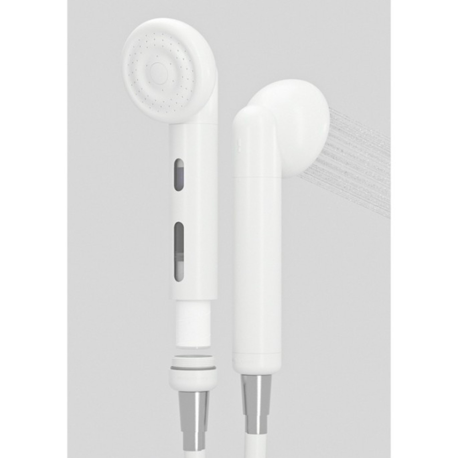 Capsule Shower Device, made from environmentally friendly materials using ABS, which also functions as an antibacterial. It is equipped with a water drainage structure in the head to reduce bacterial growth. With a unique perforation design, it produces a softer yet powerful water spray.
